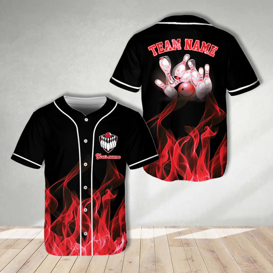 Custom Bowling Team Jersey, Personalized Baseball Jersey with Flames Design, Your Name and Team Name