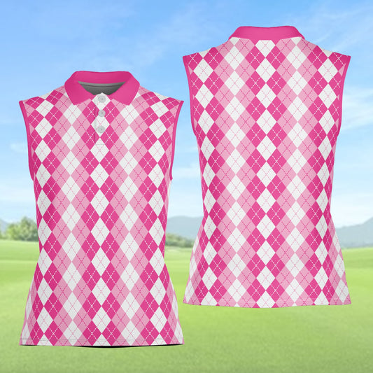 Retro Argyle Golf Polo Shirt, Tennis Team Sleeveless Men Women Polo, Pickleball Player Tournament Gift