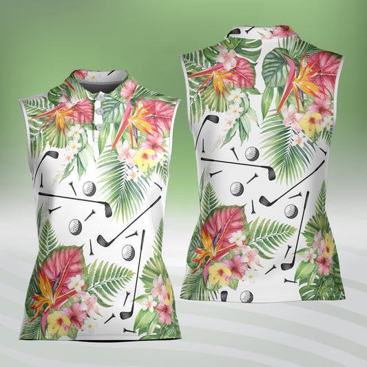 Tropical Golf Polo Shirt, Golf Team Summer Vibes Sleeveless Men Women Polo, Golf Player Tournament Gift