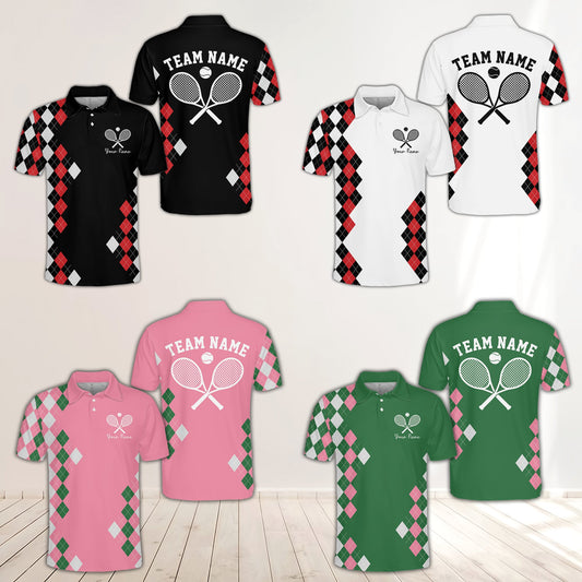 Custom Team Argyle Tennis Polo Shirt, Personalized Tennis Sleeveless Men Women Polo, Tennis Player Gift