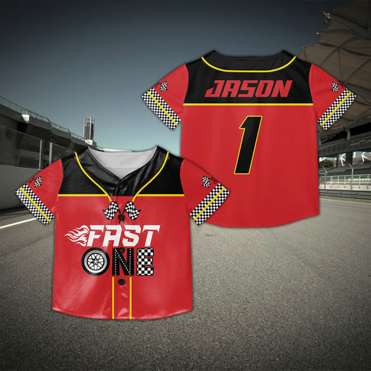Pit Crew Baseball Jersey, Custom Name 1st 2nd Birthday Racing Jersey, Matching Checkered Family Baseball Jersey