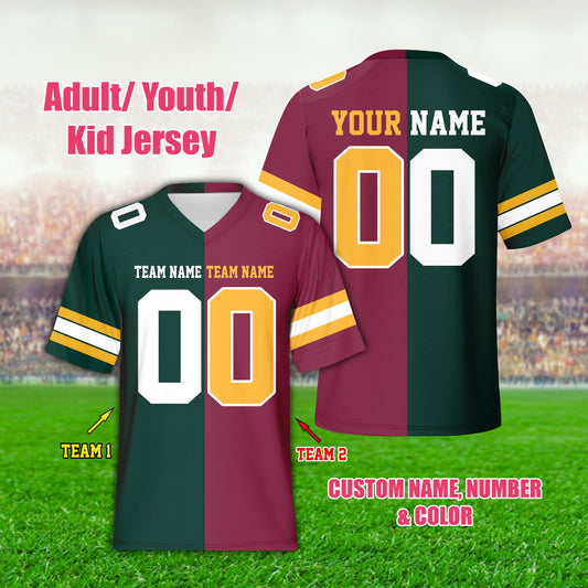 Custom 2 Teams American Football Jersey (Adult & Kids) – Add Team Name, Player Name & Number