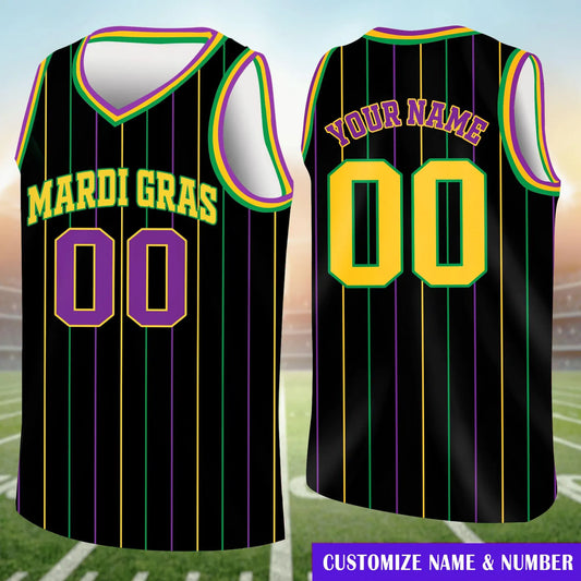 Mardi Gras Pinstripe Basketball Jersey (Adult & Kids) – Custom Name & Number