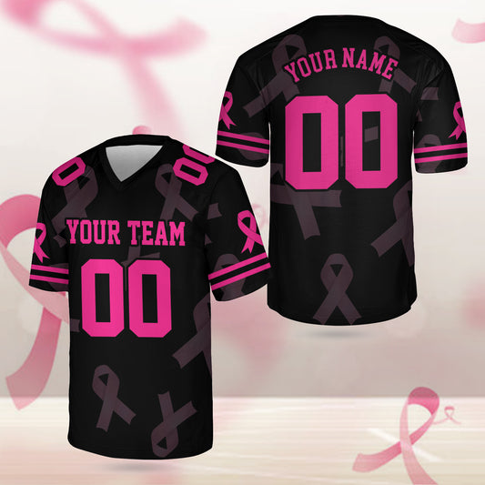 Personalized Hope Breast Cancer Team Name And Number Football Jersey, Custom Pink Ribbon Football Jersey Shirt, Breast Cancer Warrior Jersey