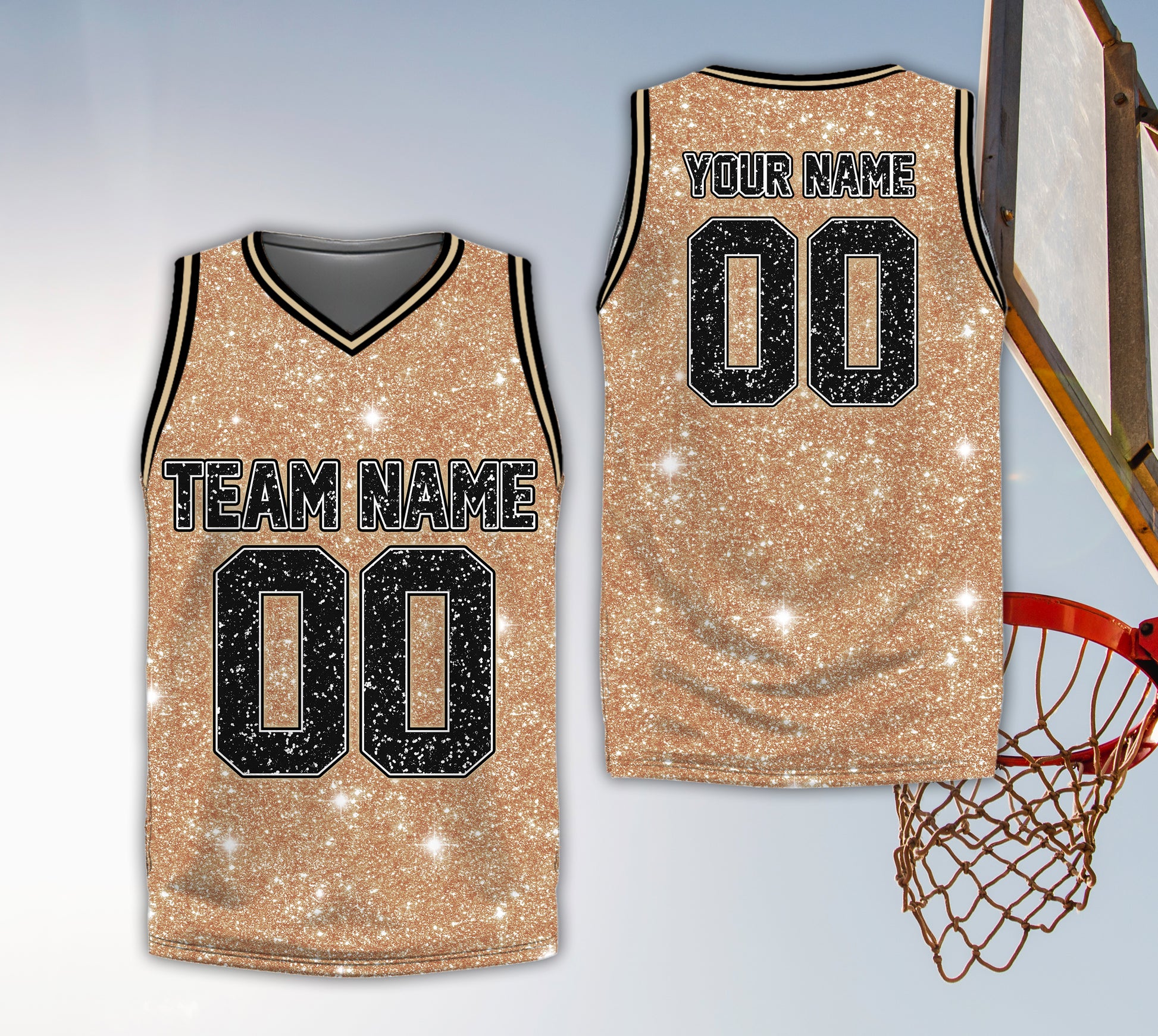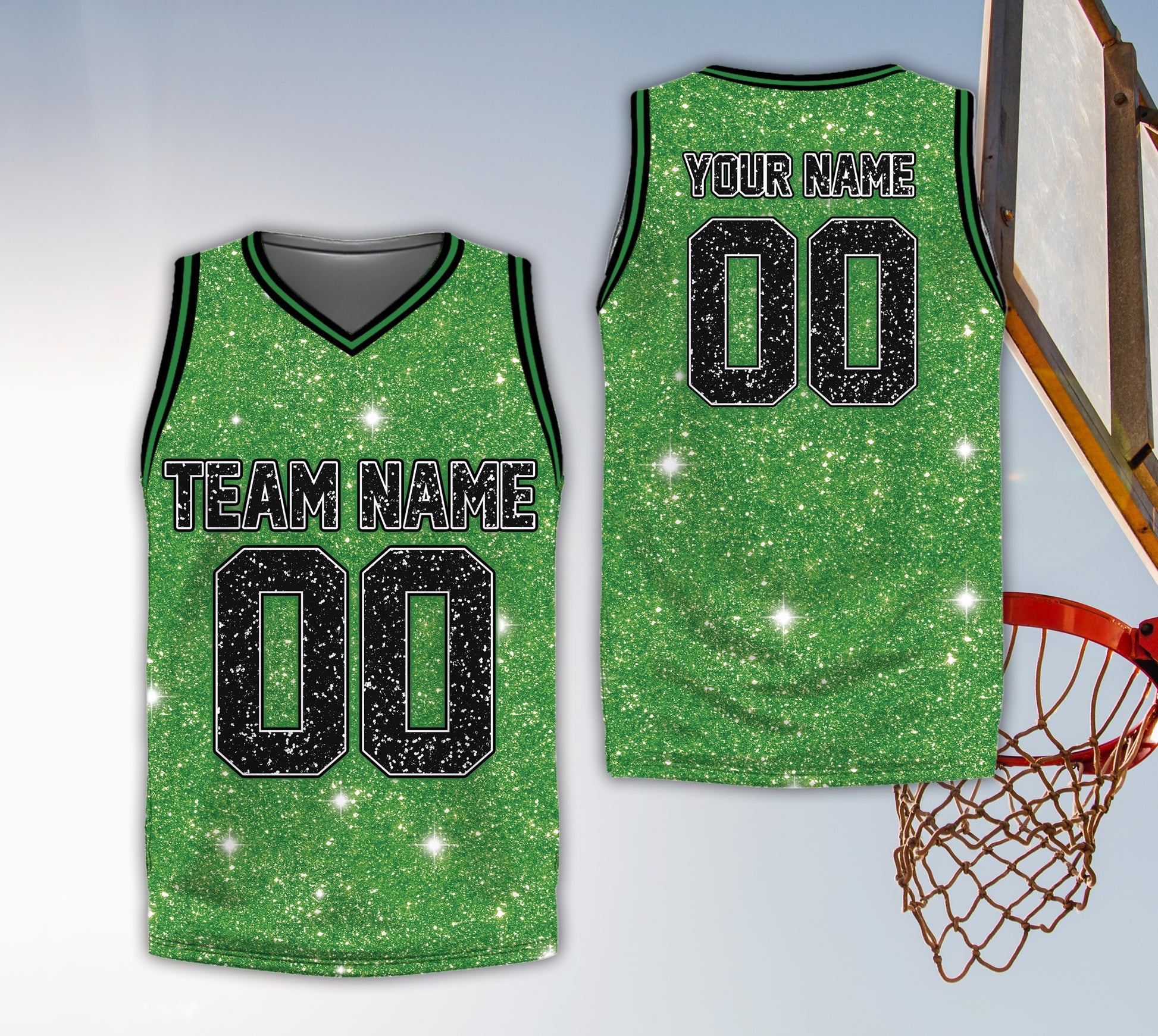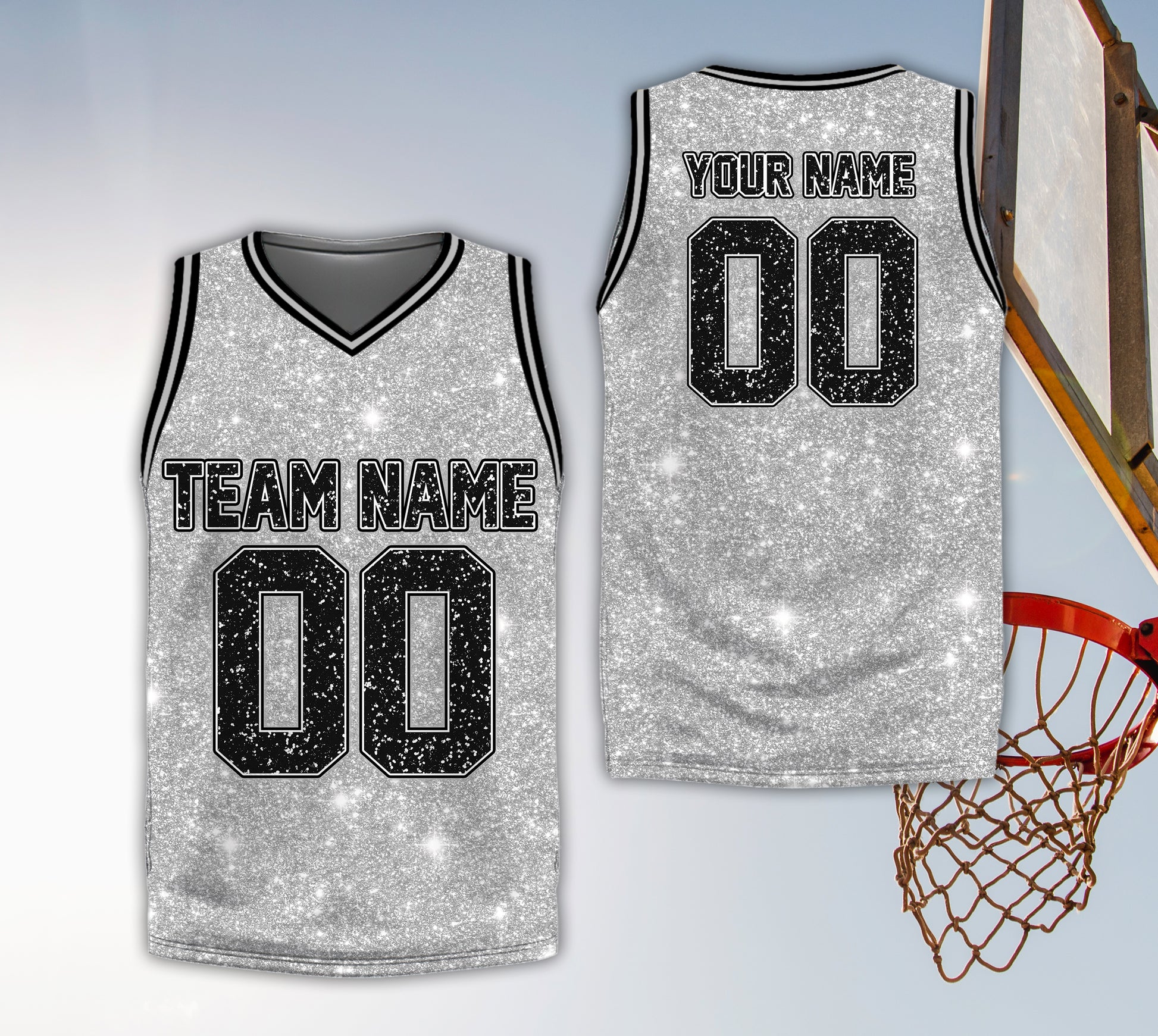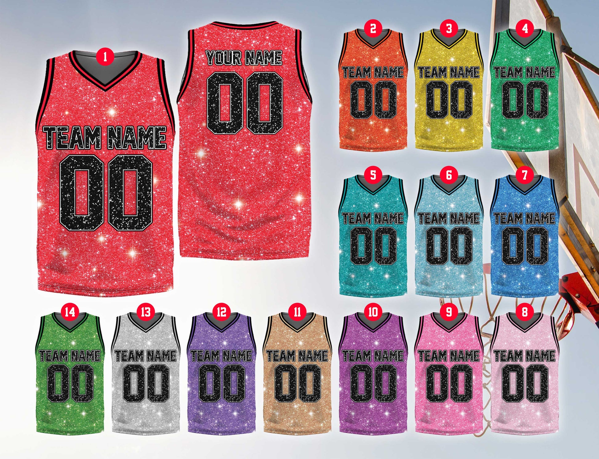 Own the court and the parade route. This basketball jersey features in the iconic palette with a printed glitter effect and your custom Name and Number. Available for both Adults and Kids/Youth so the whole crew can match.