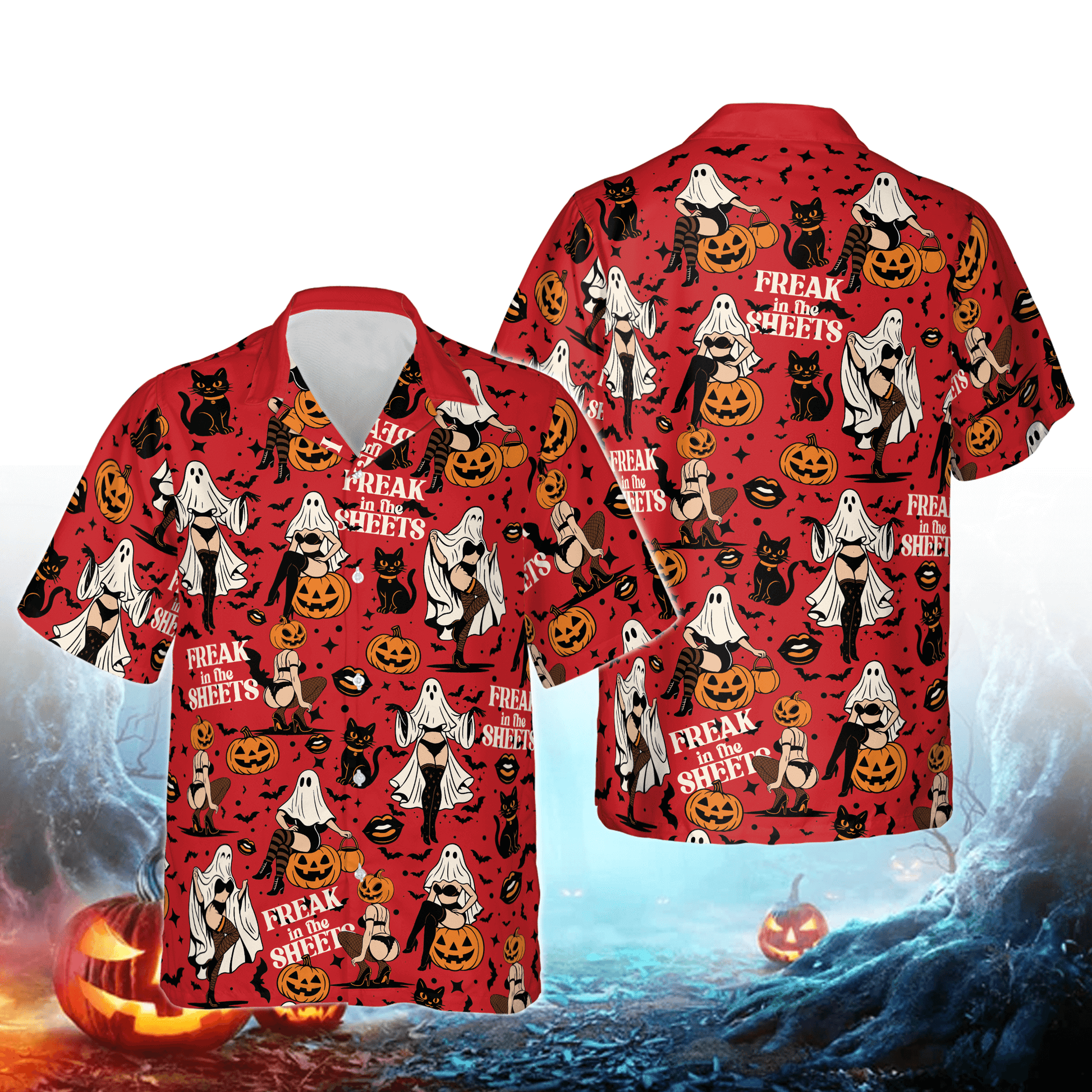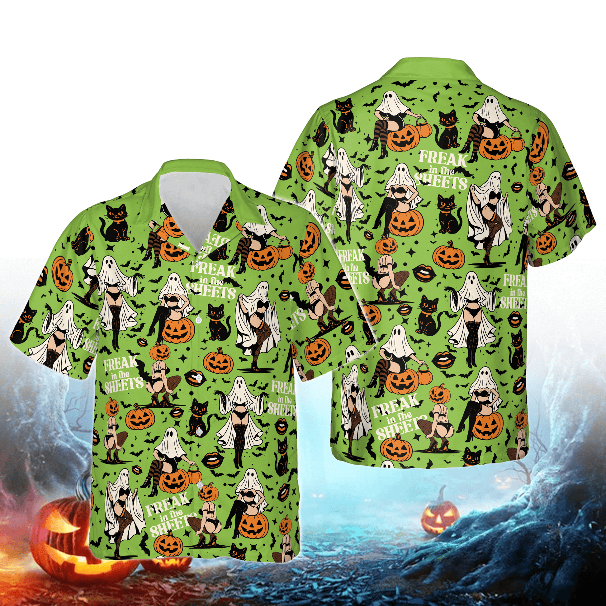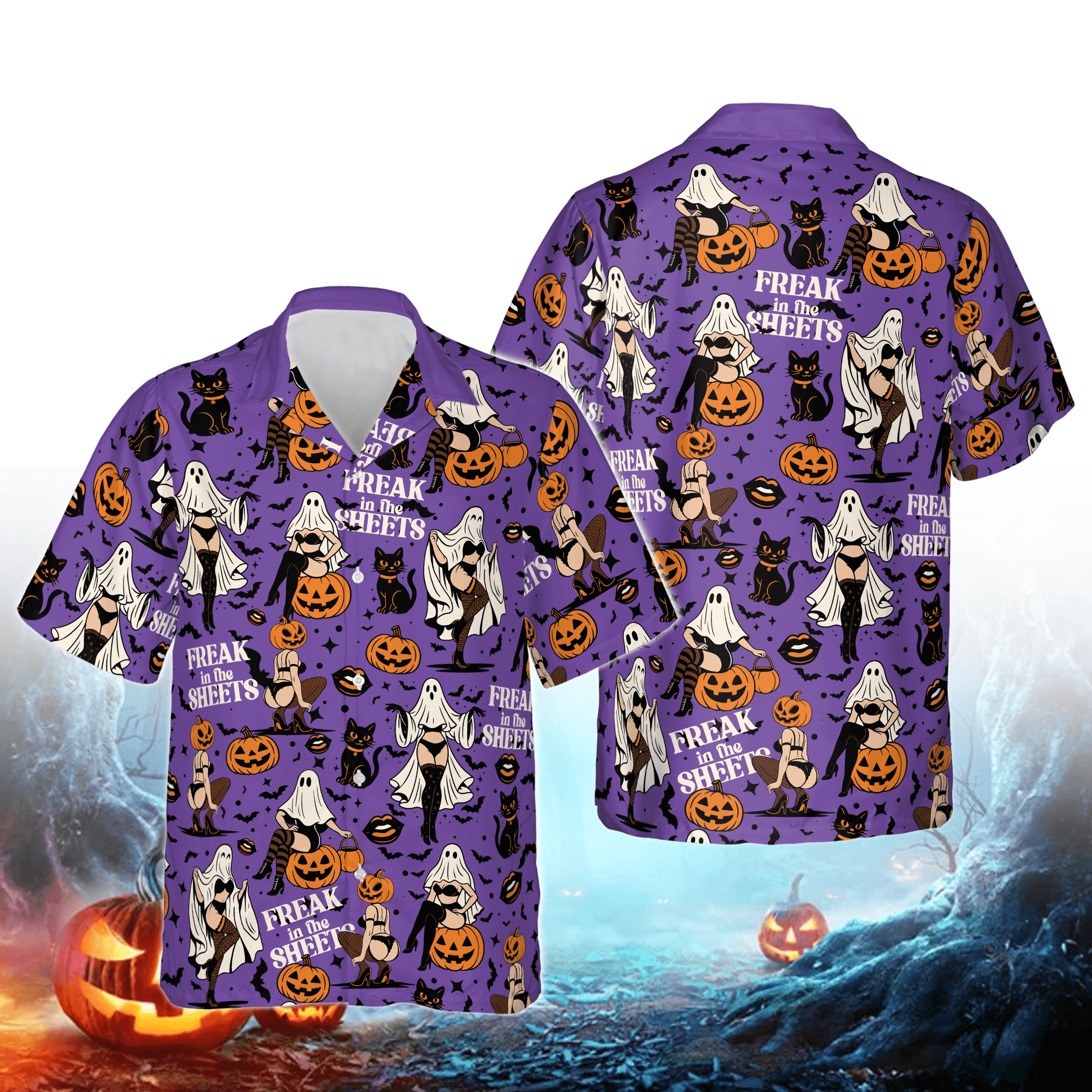 Show your spooky spirit in style with our Halloween Hawaiian shirt! This isn’t just a shirt; it’s the perfect way to celebrate the season with a bold, festive, and fun look. Featuring playful ghost, pumpkin, and black cat designs on a vibrant background, this shirt is the ultimate statement piece for Halloween lovers of all ages.